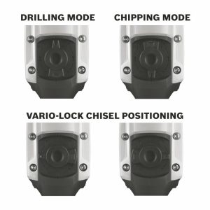 Vario-Lock positioning — rotates and locks chisel into 12 different positions to optimize working angle