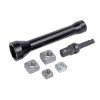 3 solid rivets connect steel mounting