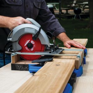 Get miter saw quality from your circular saw! The Crosscut Station gives you the capabilities of a miter saw with just a circular saw and Kreg guided cutting. Crosscut boards wider than most compound miter saws can handle (up to 12″ at 90°). Make a variety of angle and miter cuts from 0° to 45° with the adjustable fence and positive stops at 0° and 45°. An MDF base and SureCut backboard act as a sacrificial surface for splinter-free cutting results. The MDF base also functions as a kerf line so you can clearly see the blade’s path and know exactly where your saw will cut every time. Use material support wings and the detachable blocks to cut long boards safely by supporting your offcuts. They pull out easily when more support is needed, and tuck back in when not in use. The Crosscut Station is quick to set up and easy to store away. Its compact design even makes it portable when you need accurate crosscuts and angle cuts on the go.