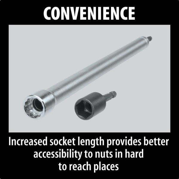 Additional socket length provides better accessibility to nuts in hard to reach places